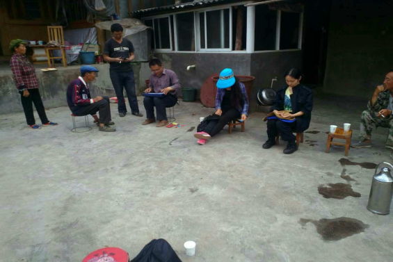 2017年7月24日,雨。州发改委驻大姚县六苴镇簸箕村委会扶贫工作队员、驻石房村委会共8名驻村工作人员分别到各自挂点的村委会开展动态管理工作。
